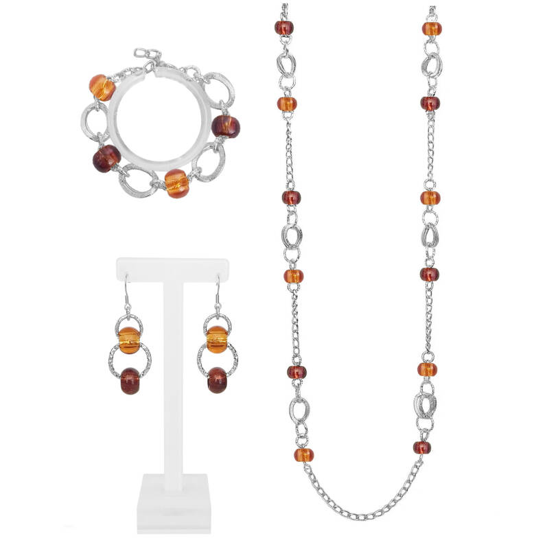 approfitta dell'offerta per l'acquisto di questa parure, che con le sue perle di vetro colorato dona un tocco di luminosità ed eleganza al tuo look